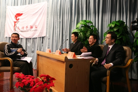 中國火炬手聯盟副主席、北京海龍集團董事長魯瑞清在儀式上說,中國火炬手聯盟由奧運火炬手組成,本著傳承北京奧運精神和“點燃奮斗激情,傳遞成功夢想”的理念,致力于推動青年學子的成長。希望在全球金融危機的挑戰之下,學子們能夠發揚奧林匹克精神,迎難而上。