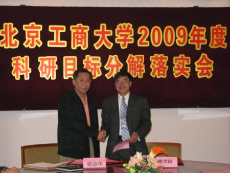 隨后,謝志華副校長先后與經濟學院、化學與環(huán)境工程學院、機械工程學院、計算機與信息工程學院、商學院、法學院(馬克思主義學院)、藝術與傳媒學院、外國語學院、材料科學與工程系(塑料研究所)、體育部、圖書館、網絡中心、文科實踐中心、學報編輯部、心理素質教育中心等負責人在科研目標分解書上簽字。
