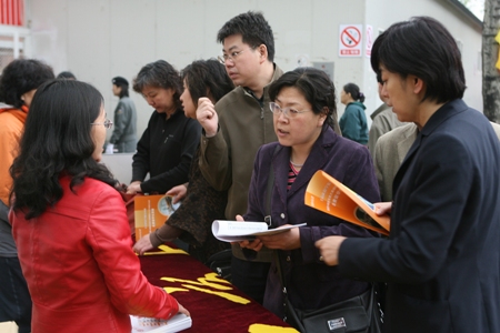 志愿者也是此次高招咨詢會中一道亮麗的風景線,他們一早便來到咨詢會,布置會場,搬運桌椅和咨詢材料。他們從清晨一直站到傍晚,全心全意的服務,受到了老師和家長們的一致好評。此次咨詢會首次啟用了安檢措施,一位家長說:“安全檢查保證了咨詢會的順利進行,學校的這項措施充分的顯示了學校對于此次咨詢活動的高度重視。”