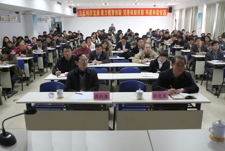 譚向勇校長在總結時指出,郭廣生副主任的報告數(shù)據(jù)翔實、建議中肯,尤其是對學校的期望,充滿理性的思考,對學校在新的起點上科學謀劃新發(fā)展有非常重要的意義。他要求全體黨員干部要認真學習領會郭廣生副主任對學校戰(zhàn)略發(fā)展提出的七點建議,力爭將其貫穿和落實在學校科學發(fā)展之中。
