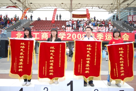 接著,黨委宣傳部部長刁晶輝宣布“現場氣氛優秀集體獎”、“組織參與優秀集體獎”和“文明觀眾優秀集體獎”的獲獎單位。其中“文明觀眾優秀集體獎”由材料科學與工程系、法學院、研究生部、繼續教育學院獲得,“現場氣氛優秀集體獎”由商學院、計算機與信息工程學院、經濟學院、藝術與傳播學院獲得,“組織參與優秀集體獎”由機械工程學院、嘉華學院、化學與環境工程學院、外國語學院獲得。