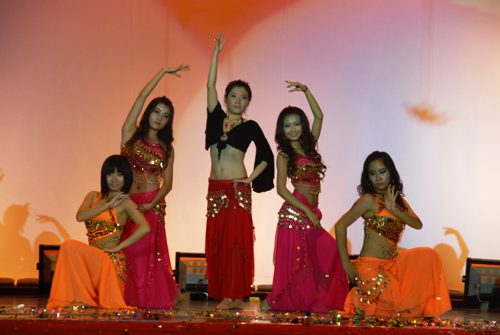 在“5、4、3、2、1”在倒計時聲中,晚會正式拉開了帷幕。799樂隊帶來的熱場歌曲 《knocking on heaven’s door》迅速點燃了現場氣氛,將大家的血液燃燒到沸騰。活力四射的街舞、充滿異域風情的肚皮舞、動感十足的花式籃球表演、溫情動人的05級畢業班合唱將晚會現場氣氛一次次推向高潮。