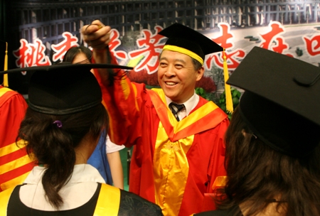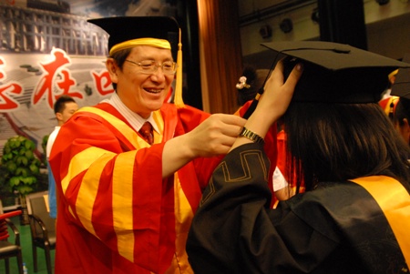 畢業(yè)典禮的高潮是校院領(lǐng)導(dǎo)為每一位參加畢業(yè)典禮的09屆畢業(yè)生扶蘇并頒發(fā)畢業(yè)證書。此時此刻,興奮和喜悅使09屆畢業(yè)生們幾乎雀躍,他們知道自己人生中一個重要時刻已經(jīng)來臨。當(dāng)校院領(lǐng)導(dǎo)為每一位畢業(yè)生扶蘇并頒發(fā)畢業(yè)證書的時刻,學(xué)生、老師、學(xué)生家長們紛紛拍照留念,全場洋溢著幸福和祝福,成為歡樂的海洋。