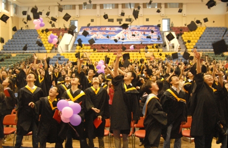 禮畢,全場畢業(yè)生一起把學(xué)士帽扔向上空,慶祝自己學(xué)業(yè)已成。