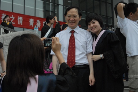 法學院黨總支副書記文四英老師也在圖書館前和畢業同學合影,慶祝。她說:“看著學生就要走了,自己的心情也很復雜,在慶祝的同時也難掩內心的傷感。當學生高高拋起學士帽,宣告自己畢業的時候,我也想到自己大學畢業的時候了。作為老師我希望畢業的同學多和校友、和老師聯系,無論以后發展怎樣了,母校永遠是大家心靈的港灣。我們都還年輕,學無止境,走上工作崗位的也要加強學習,不斷進步。剛走上工作崗位的學子,難免會遇到挫折,我們要有這個心理承受能力。最后祝愿同學們都有一個美好的前途和愿景!”