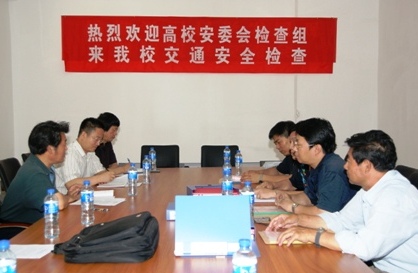 來自北京科技大學、首都師范大學和中國青年政治學院的專家首先查看了我校的交通安全方面的檔案文件。頓勁松受校黨委副書記、學校安委會主任盧思鋒委托代表我校交通安全委員會向專家匯報了我校09年上半年的交通安全工作。