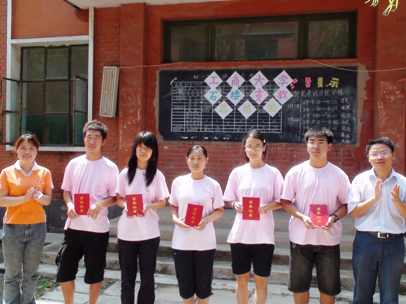 外國語學院在石樓中學開展的“紅鉛筆”支教活動的課程安排分為兩部分:上午以英語教學為主,分為音標、語法、寫作、閱讀、口語等專題,下午的活動分別為愛國電影播放、安全知識講座、成長成才教育等,他們希望通過上午的英語課程教學,培養中學孩子們的學習興趣,通過下午形式多樣的社會實踐體驗,培養同學們愛國成才的遠大理想,幫助同學們養成文明健康的生活習慣和處世道理。幾天來,實踐分團成員們克服斷水、下雨、蚊蟲叮咬等困難,圓滿完成了本次社會實踐活動的各項工作,展現了工商學子的良好形象,得到石樓中學老師、學生和家長的一致好評,同學們與中學的孩子們建立了深厚而淳樸的感情。
