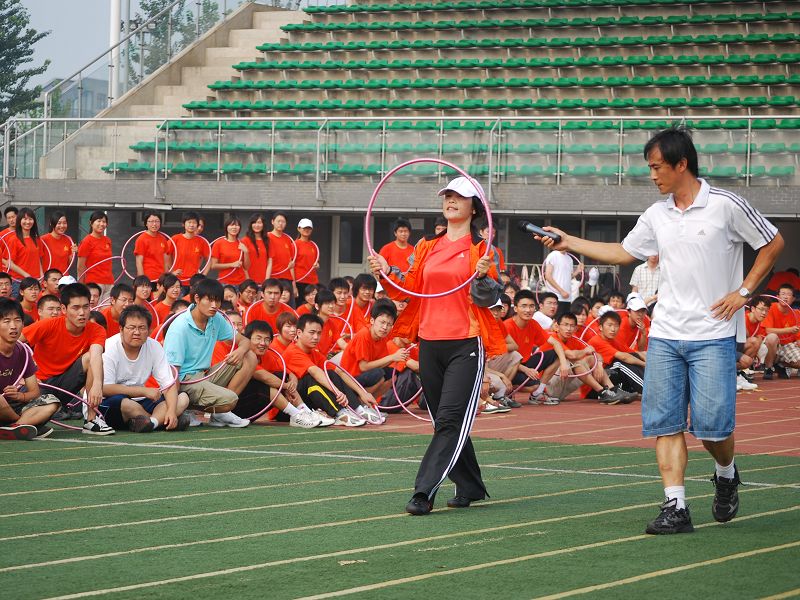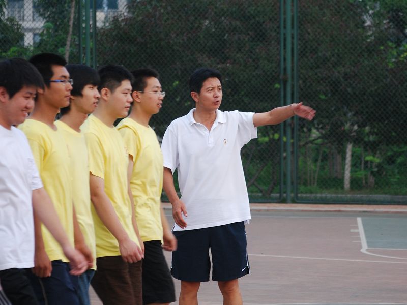 很多老師都是同學(xué)們所熟悉的。平時(shí),他們和同學(xué)一起打球、一起流汗、一起歡笑。訓(xùn)練中,他們也和大家一起流汗,不同的是為了圓滿完成國慶任務(wù),他們更加嚴(yán)肅、不茍言笑。從動(dòng)作到口號(hào)、從細(xì)節(jié)到整體,任何一個(gè)不規(guī)范的地方他們都不放過。為了保證隊(duì)伍做到橫、豎、斜“三條線”,“稍息立正、前后對(duì)正、左右看齊”成了他們的口頭語;“雙手食指貼緊褲線,拇指放在食指第二關(guān)節(jié)”是他們每天重復(fù)次數(shù)最高的話。他們一遍又一遍不厭其煩的提醒著同學(xué)們,只愿在最短訓(xùn)練內(nèi)取得最佳效果。