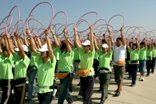 踏著音樂節(jié)拍,我校學生迎著朝陽排著整齊的隊伍行進在大道上,手舞花環(huán)、步伐矯健與口號響亮展示著我校師生刻苦訓練的成果。其他單位的隊員也用實際行動展示了良好的精神風貌,我校同學報以熱烈掌聲,顯示了方陣全隊團結一致、友愛奮進的必勝信念。