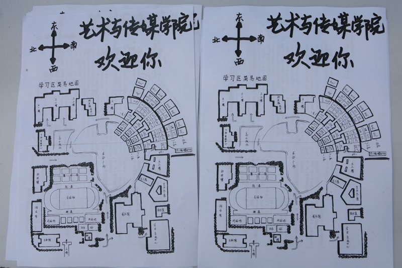 “同學你好,這是藝傳新生報到的流程圖,歡迎來到藝傳學院!”這些流程圖全部出自藝傳學生之手,從宿舍號表格到校區引導圖,全由同學手繪完成,精美的手工展示了藝傳學院學生與眾不同的創意與才華,表示了對新生的熱烈歡迎,再次上演著藝傳的口號“藝傳傳奇”。在校的往屆學生自愿前來幫忙,達到了專人專職的迎新場面,各項工作有序展開。