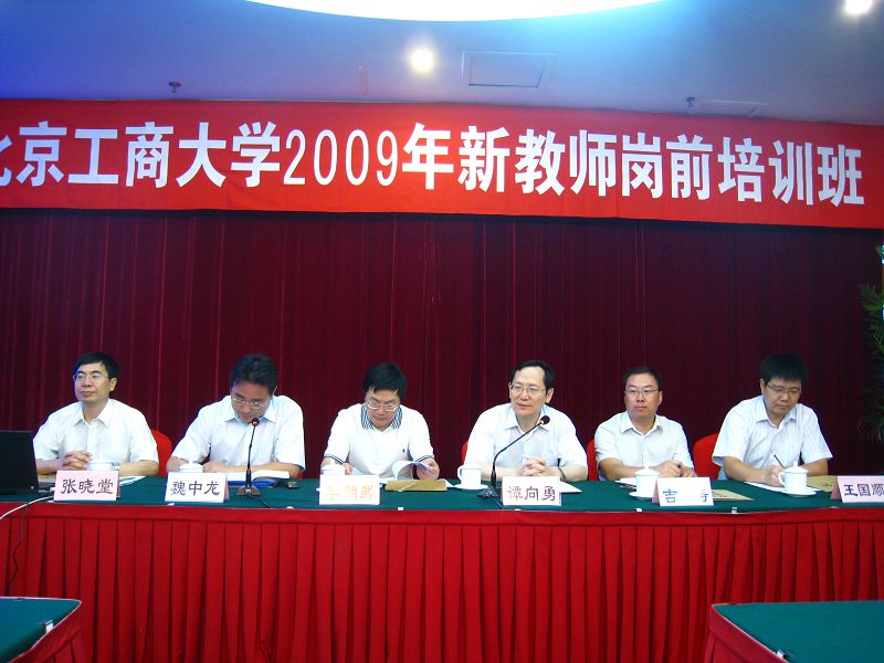 由學校人事處、教務處和科學技術處聯合主辦的“北京工商大學2009年新教師崗前培訓班”于8月27日至29日在北京天湖會議中心舉行,49名新教師參加了培訓。校領導譚向勇、李朝鮮出席了培訓班開班式,孫堯東出席了培訓班結業式,張德玉、孫寶國、李朝鮮在培訓班分別作了專題報告。人事處處長魏中龍、教務處處長張曉堂、科學技術處長王國順、研究生部主任何明珂、學生處處長呂素香、北京市哲學社會科學規劃辦公室副主任李建平也分別作了報告。青年教師劉新亮、張慶龍、胡蓉分別作了講座和教學演示。