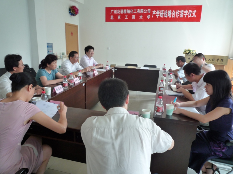 近日,廣州花語精細化工有限公司與北京工商大學產(chǎn)學研戰(zhàn)略合作簽約儀式在化工樓報告廳舉行。北京工商大學副校長謝志華、中國洗滌用品工業(yè)協(xié)會理事長鄭舞虹、花語精細化工有限公司董事長余照權出席儀式并分別作了致辭。科技處處長王國順、化工學院院長徐寶財、教師代表韓富、花語精細化工有限公司總經(jīng)理張涌、副總經(jīng)理鄒德文、經(jīng)理李嘉源參加了簽約儀式,簽約儀式由化工學院黨總支副書記何猛主持。