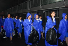 10月1日凌晨2點,迎著微微細雨,北京工商大學首都國慶群眾游行“艱苦創業”方隊踏上了去往天安門的征途。黨委副書記盧思鋒激動地說:“我們將盡我們最大的努力圓滿地完成這項祖國交給的光榮任務任務,為祖國六十華誕獻禮!”。