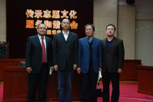 校黨委副書(shū)記盧思鋒代表學(xué)校贈(zèng)予朱衛(wèi)國(guó)先生及金國(guó)坤教授由我校學(xué)生親手制作的奧運(yùn)福娃剪紙卷軸。