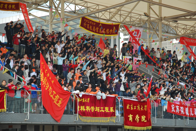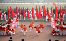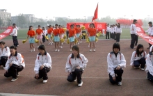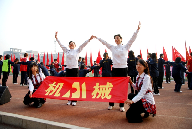 機(jī)械工程學(xué)院的師生身穿深藍(lán)色運(yùn)動(dòng)服走入會(huì)場(chǎng),顯示了機(jī)械一向嚴(yán)謹(jǐn)?shù)闹螌W(xué)態(tài)度。規(guī)整的機(jī)械梯形院標(biāo)中間是那激情的健美操表演;左右兩側(cè)則上演著精彩的籃球、足球球技表演。他們將在運(yùn)動(dòng)場(chǎng)上揮灑熱情,爭(zhēng)創(chuàng)佳績(jī)!