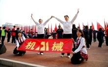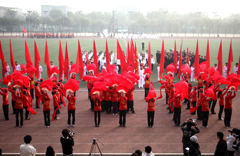 紅綢飛舞映朝陽(yáng),口號(hào)洪亮震天響。火紅的院服、火紅的長(zhǎng)綢、火紅的笑臉,昭示著商學(xué)院火紅的未來(lái)。抖動(dòng)的紅綢如火焰般跳動(dòng),整齊的動(dòng)作、自信的目光顯示了他們必勝的決心。