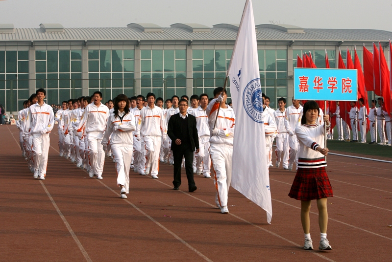 嘉華學(xué)院63名隊(duì)員邁著整齊的步伐入場(chǎng),相聚嘉華,情系工商,從通州趕來(lái)的不止是這些可愛(ài)的隊(duì)員,還有他們頑強(qiáng)拼搏、挑戰(zhàn)自我的信念。