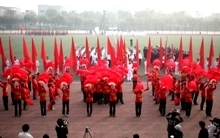 伴著激昂的旋律,邁著整齊的步伐,經(jīng)濟(jì)學(xué)院率先入場(chǎng)。一張張可愛(ài)的笑臉,充滿(mǎn)著對(duì)勝利的憧憬;鏗鏘有力的步伐,昭示著他們必勝的信心。洋溢著青春活力的啦啦隊(duì)跟隨歡快的節(jié)拍盡情舞蹈,為早晨微涼的空氣帶來(lái)熱情的溫度。