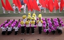 “月亮繞地球模式”成為外語(yǔ)學(xué)院在開(kāi)幕式的一大特色。列隊(duì)行進(jìn)至主席臺(tái)前,迅速散開(kāi)并手拉手組成兩個(gè)同心圓,One to all,all to one,意為團(tuán)結(jié)成就他們的輝煌。每位隊(duì)員各執(zhí)一面小五星紅旗,呼著口號(hào)。更有精彩的球技表演。