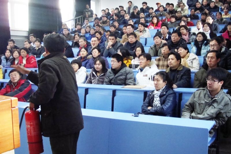 培訓會上保衛(wèi)處處長頓勁松著重講解了日常工作中和實驗室的消防安全,并對滅火器的使用進行了講解。