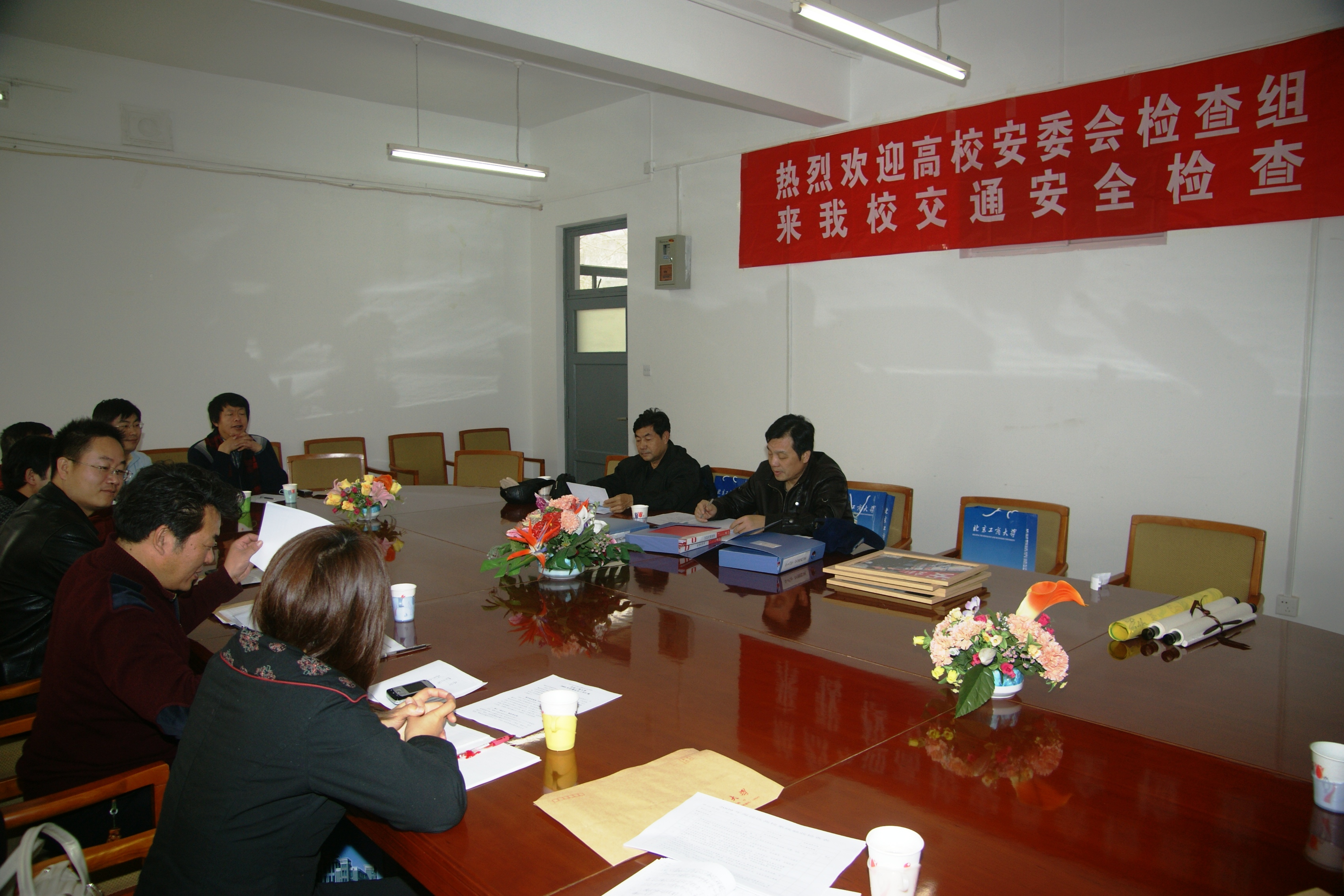 來自中國青年政治學院、北京外國語大學的專家首先查看了我校交通安全方面的檔案文件。接下來,頓勁松處長受學校安委會主任、校黨委副書記盧思鋒委托代表我校交通安全委員會向專家匯報了學校2009年的交通安全工作。