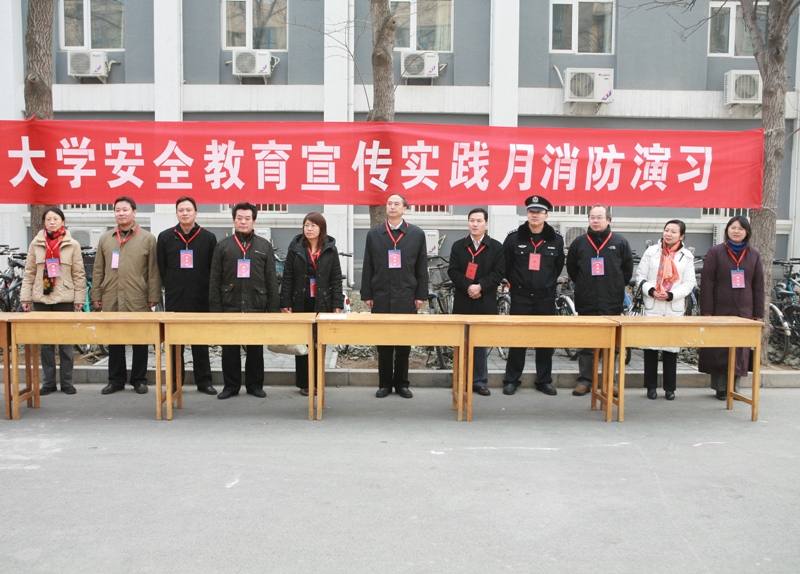 11月26日下午,為落實學校開展安全教育宣傳實踐月的活動方案,學校防火安全委員會在阜成路校區東區3號樓進行了大規模的消防演習活動。此次活動凸顯了安全實踐月提出的“加強師生員工安全意識,提高安全防范技能,構建平安校園、和諧校園”的主題,將安全教育宣傳實踐月活動推上高潮。校黨委副書記、學校安委會主任、消防演習總指揮盧思鋒到現場并講話;市委教工委保衛保密處王建輝副處長、市公安局文保處張錚警官作為嘉賓出席了演習現場。
