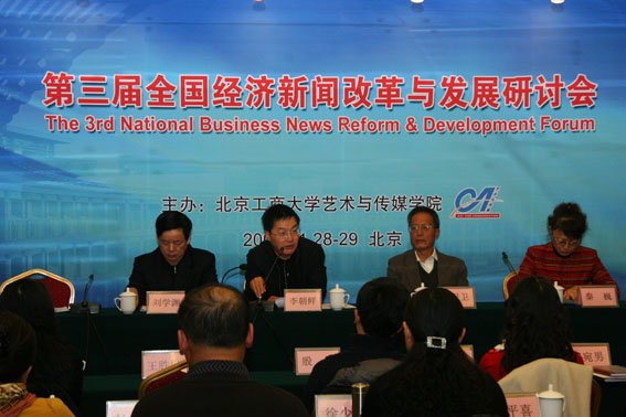 2009年11月28日,由北京工商大學(xué)藝術(shù)與傳媒學(xué)院主辦的第三屆全國經(jīng)濟(jì)新聞改革與發(fā)展研討會在北京裕龍大酒店舉行。來自《人民日報》、《經(jīng)濟(jì)日報》、《財經(jīng)》、《經(jīng)濟(jì)觀察報》、《IT經(jīng)理世界》、《中國貿(mào)易報》、《中國證券報》、《中國經(jīng)濟(jì)時報》、《中國新聞周刊》、《經(jīng)濟(jì)參考報》、《鳳凰周刊》以及中央電視臺財經(jīng)頻道等知名媒體的領(lǐng)導(dǎo)、資深媒體人和中國人民大學(xué)、中國傳媒大學(xué)、中央財經(jīng)大學(xué)、上海財經(jīng)大學(xué)、重慶工商大學(xué)、安徽財經(jīng)大學(xué)、河北經(jīng)貿(mào)大學(xué)、上海商學(xué)院、蘭州商學(xué)院等高校的新聞傳播學(xué)者、專家齊聚一堂,共同探討金融危機(jī)背景下經(jīng)濟(jì)新聞創(chuàng)新與發(fā)展的對策。北京電視臺《首都經(jīng)濟(jì)報道》對此次研討會進(jìn)行了報道。
