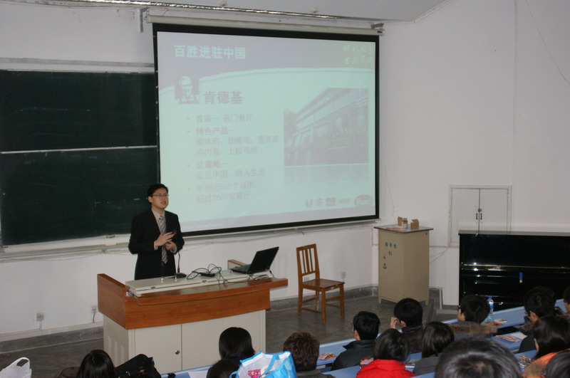 本周走進(jìn)校園的知名餐飲企業(yè)還有百勝餐飲集團(tuán)(Yum! Restaurants China)。百勝餐飲集團(tuán)隸屬于在美國(guó)紐約證券交易所掛牌上市的百勝全球餐飲集團(tuán)(Yum! Brands Inc.),是中國(guó)最大的餐飲集團(tuán)。其旗下的多個(gè)品牌耳熟能詳,如必勝客、肯德基、東方既白等等。百勝中國(guó)北京市場(chǎng)運(yùn)營(yíng)經(jīng)理杜小姐、人力資源部經(jīng)理王先生等公司高層為畢業(yè)生帶來(lái)了餐廳見(jiàn)習(xí)助理的職位。通過(guò)宣講會(huì),使學(xué)生了解到企業(yè)文化以及餐廳見(jiàn)習(xí)助理-餐廳助理-餐廳副理-餐廳經(jīng)理-區(qū)經(jīng)理-區(qū)域經(jīng)理-其他更高職位的職業(yè)生涯途徑。