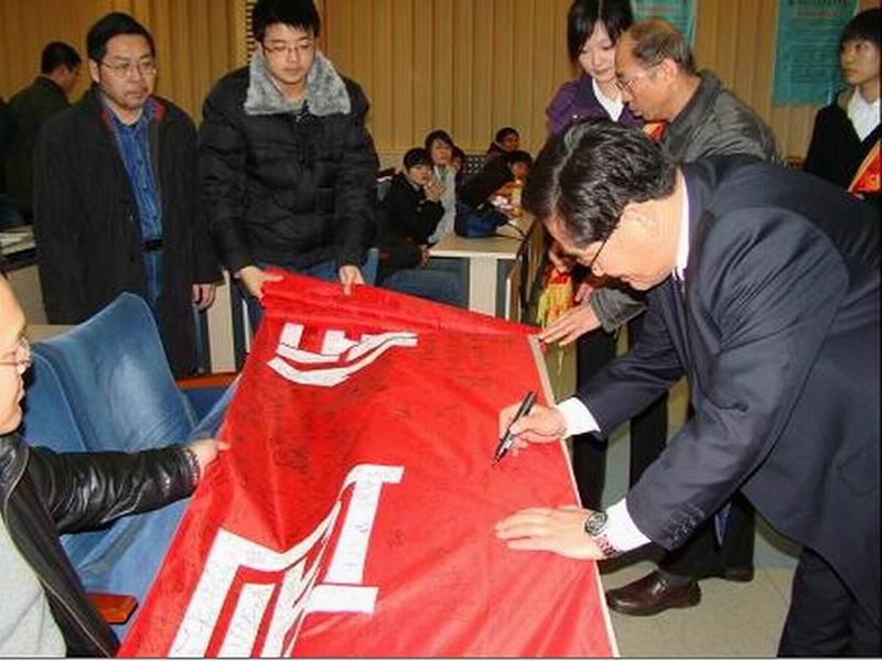 會后,張德玉副書記在寫有“構建廉潔校園、促進科學發展”的條幅上題詞簽名,激勵教導學生“清正廉潔、健康成才”。