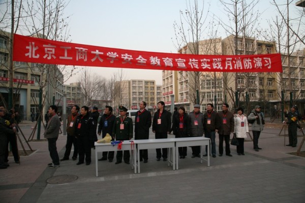 為落實(shí)學(xué)校關(guān)于開展安全教育宣傳實(shí)踐月的活動(dòng)方案,加強(qiáng)師生員工安全意識(shí),提高安全防范技能,構(gòu)建平安校園、和諧校園,12月22日下午,學(xué)校防火安全委員會(huì)在良鄉(xiāng)校區(qū)五組團(tuán)對(duì)大一新生和后勤人員組織了大規(guī)模的消防演習(xí)活動(dòng)。校黨委副書記、學(xué)校安委會(huì)主任、消防演習(xí)總指揮盧思鋒和副校長(zhǎng)呼文亮親臨現(xiàn)場(chǎng);房山區(qū)消防支隊(duì)徐進(jìn)團(tuán)警官到達(dá)現(xiàn)場(chǎng)親臨指導(dǎo);良鄉(xiāng)派出所警官王高虎和良鄉(xiāng)高教園區(qū)辦公室楊主任作為嘉賓出席了演習(xí)現(xiàn)場(chǎng)。