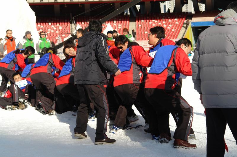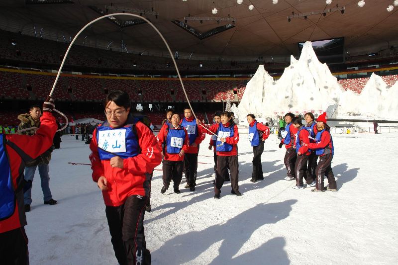 我校教職工代表隊參加了全民健身電視挑戰(zhàn)賽三個雪地項目的比賽:拔河、集體跳繩和“時代列車”(“同舟共濟”)。在隊長呂東燕的帶領下,全體隊員團結協(xié)作,發(fā)揚了不畏嚴寒、奮勇爭先的精神,取得了周賽集體跳繩第一、拔河第二、“時代列車”第二的好成績,獲得周賽亞軍,展現(xiàn)了北京工商大學教職工積極參加冬季全民健身運動的風采。