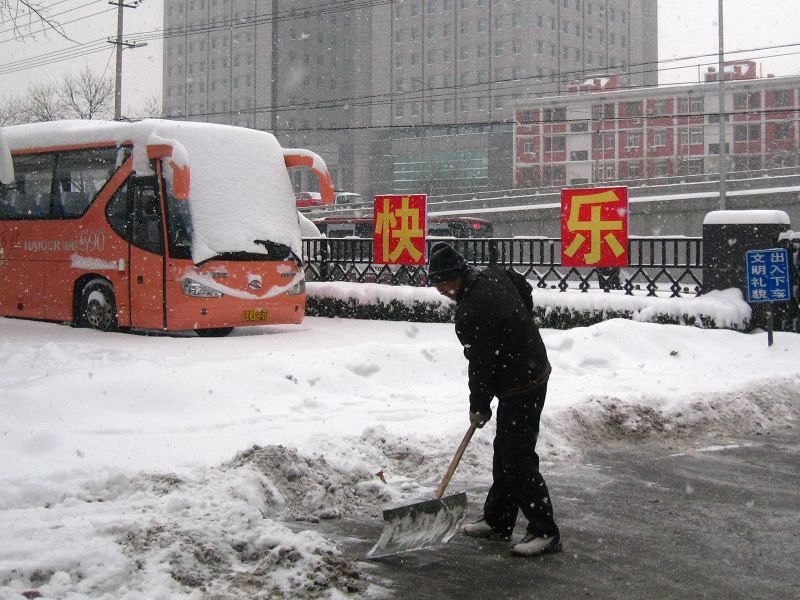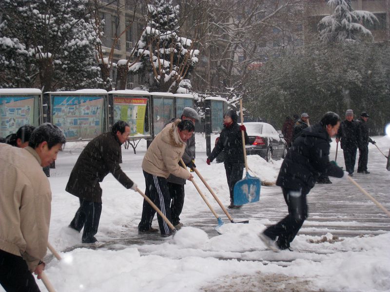 由于降雪沒有停,為保證節(jié)后師生員工的出行安全,后勤號(hào)召大家發(fā)揚(yáng)不怕疲勞、連續(xù)作戰(zhàn)的精神,要求全體員工4日早7點(diǎn)上班,全部投入到掃雪工作中,全力迎接新年的第一個(gè)考驗(yàn)。有的家遠(yuǎn)同志擔(dān)心路滑不好坐車,早上六點(diǎn)就出家門,顧不上吃早飯。有的同志前一天掃雪感冒了,還是堅(jiān)持參加掃雪。校門口值班的保安也一同幫助掃雪。