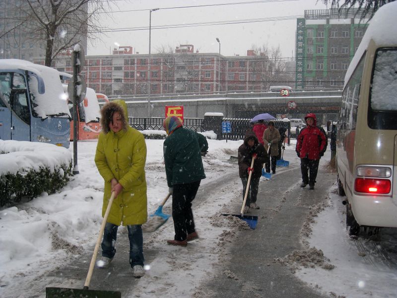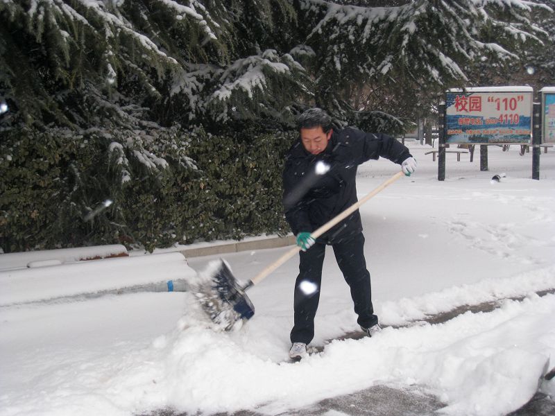 2日21時(shí)左右,后勤處領(lǐng)導(dǎo)及物業(yè)中心負(fù)責(zé)人就開始電話通知:啟動(dòng)學(xué)校掃雪鏟冰工作預(yù)案,按預(yù)先劃分的責(zé)任區(qū)、責(zé)任人,及時(shí)開展阜成路、良鄉(xiāng)校區(qū)的掃雪鏟冰工作。3日早上5點(diǎn),物業(yè)中心的保潔員就開始在阜成路校區(qū)、家屬區(qū)掃雪,6點(diǎn)公寓值班的同志開始打掃學(xué)生宿舍門前積雪,7點(diǎn)物業(yè)中心的其他員工也加入到掃雪的行列中。下午3點(diǎn)多,在后勤主管校長呼文亮、后勤處處長魏冰、副書記張建平、副處長盧燦寬、尹寶星的帶領(lǐng)下,后勤處、綜合中心、物業(yè)中心、維修中心、公寓中心、飲食中心、運(yùn)輸中心的100多名職工,紛紛趕往學(xué)校,陸續(xù)投入到掃雪隊(duì)伍中。盡管天氣寒冷,但大家干勁十足,紅彤彤的臉上掛滿了汗水和雪水,直到天色漸黑,大家才回家吃飯。