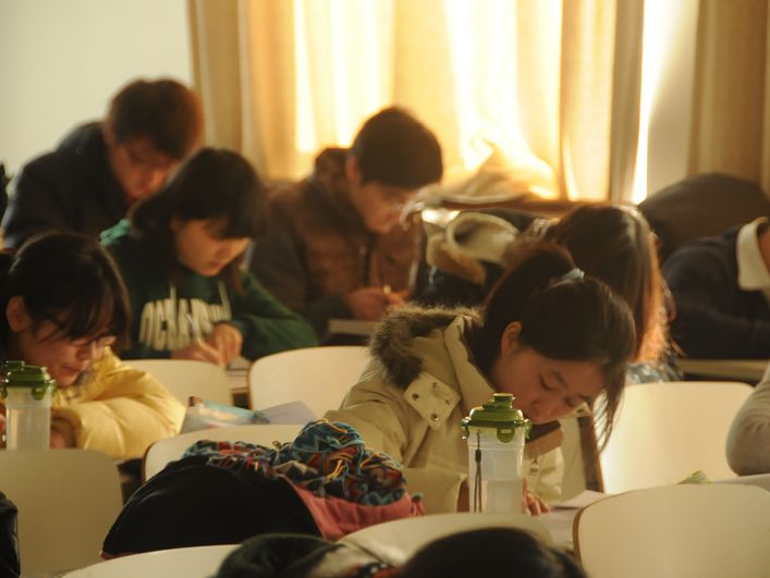 4日上午,當(dāng)鐘樓的時(shí)鐘指向8:30分時(shí),所有上課的老師都早已按時(shí)到崗。按照教學(xué)安排,本周是第18周,必修課老師為學(xué)生答疑,有的選修課進(jìn)行隨堂考試。教務(wù)處領(lǐng)導(dǎo)和各辦公室工作人員在良鄉(xiāng)校區(qū)進(jìn)行了巡查,看到學(xué)生們按時(shí)到達(dá)教室,基本上沒(méi)有遲到現(xiàn)象。老師們或答疑,或監(jiān)考,態(tài)度認(rèn)真,整個(gè)教學(xué)秩序井然。