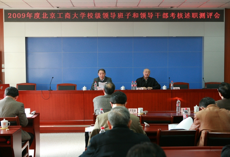 2010年1月5日下午,學(xué)校領(lǐng)導(dǎo)班子和領(lǐng)導(dǎo)干部年度考核述職測評會在阜成路校區(qū)教三樓351會議室召開。會議由黨委書記孫堯東主持,考察組組長、市委教育工委聯(lián)絡(luò)員畢孔彰、高云華,市委教育工委干部處干部全志出席會議。畢孔彰同志作動員講話,他強調(diào)對學(xué)校領(lǐng)導(dǎo)班子的年度考核,主要考核本年度發(fā)揮職能作用情況,內(nèi)容包括思想政治建設(shè)、領(lǐng)導(dǎo)水平、工作實績、反腐倡廉、完成重點任務(wù)等方面的實際成效,對領(lǐng)導(dǎo)干部的年度考核,主要考核年度履行崗位職責(zé)情況,內(nèi)容包括德、能、勤、績、廉等方面的現(xiàn)實表現(xiàn)。