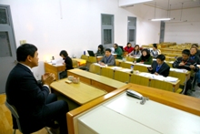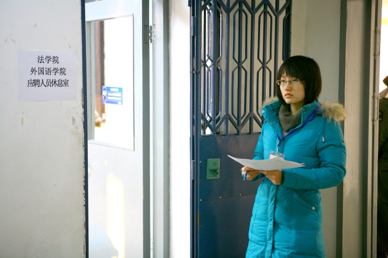 持續的低溫使得地面的積雪還沒有完全褪去,但寒冷的溫度擋不住學校求才若渴的熱切心情和面試者的求職熱情。1月9日上午8時,北京工商大學2010年教師招聘面試工作準時開始。面試現場氣氛熱烈:教室內,面試官認真提問,仔細記錄,審慎打分;應聘者積極回答,充分展示自己的才華。等候區內,候場的應聘者有的閉幕養神,一派成竹在胸的鎮定;有的略顯緊張,手捧一小本做臨陣前的最后“磨槍”;工作人員來回奔忙,負責排序、引導;面試現場雖然緊張但秩序井然。