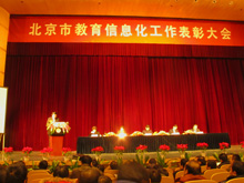 本次大會是北京市關于教育信息化方面的第一次如此大規(guī)模的總結(jié)表彰大會,受表彰的單位有市教委直屬單位、普通高等學校、職業(yè)成人學校、教委所屬教育教學單位。出席大會的有北京市經(jīng)濟和信息委員會副主任姜毅群、教育部科技司副司長陳盈輝、北京市教委副主任郭廣生、北京市教委委員曹素云;北京市高校信息化主管校長、信息中心主任;區(qū)縣主管主任、信息中心主任;各直屬單位領導;獲獎單位代表及獲獎個人。在表彰大會上北京市教委郭廣生副主任對獲獎單位和個人表示祝賀,并做了“站在新的歷史起點上,推動北京教育信息化發(fā)展”的主題報告,對北京地區(qū)高校九年來教育信息化工作取的成績給予了充分肯定,對下一步工作提出了新的任務。教育部陳盈輝副司長祝賀北京市教育信息化取得的成績,贊揚北京教育信息化走在了全國前列,希望高校大力推進數(shù)字校園建設,充分利用現(xiàn)有資源為首都和全國服務,做出更大貢獻。北京市經(jīng)濟與信息化委員會姜毅群副主任介紹了北京市整個信息化發(fā)展情況,對高校信息化工作提出了四點思考:1.高標準籌化教育信息化規(guī)劃和任務;2.提升教育信息化面向社會服務的功能;3.加強優(yōu)質(zhì)教學資源的整合,服務于學習型社會的創(chuàng)新;4.加強信息網(wǎng)絡的安全保障。會議希望受表彰的單位和個人再接再厲,不斷創(chuàng)新,積累更多更好的經(jīng)驗,取得更大的成績。希望廣大教育工作者要不斷學習、借鑒先進經(jīng)驗,加快本市教育信息化建設與應用步伐,使北京教育信息化建設與應用水平邁上新臺階。