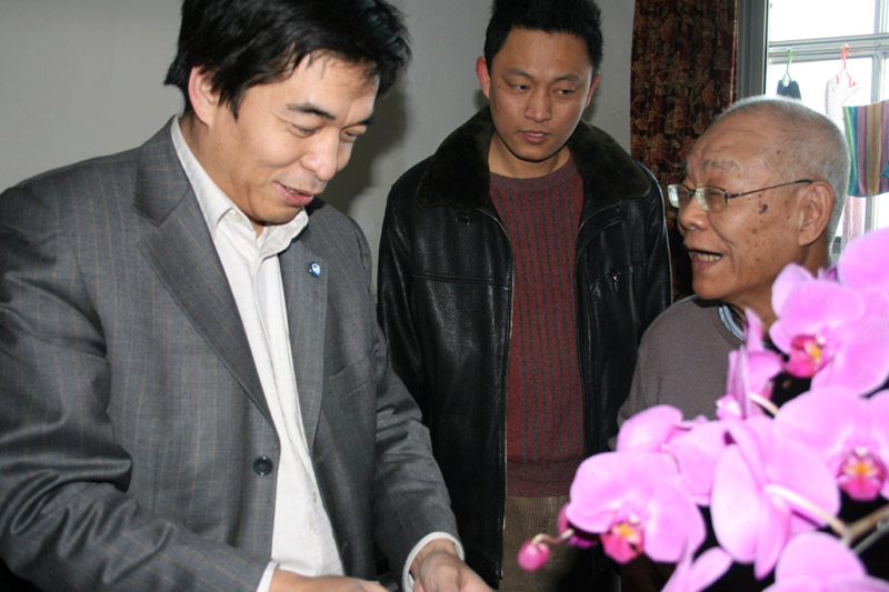 張曉磊和宋煜轉達了校領導對潘教授的問候,代表學校向潘忠貴老師送上鮮花,感謝潘老師為學校校慶準備工作做出的貢獻;同時向潘教授介紹了學校近年發展和今年黨代會、國慶游行、孫寶國教授當選為院士、教育基金會成立、校友會理事會召開等學校發展和六十周年校慶籌備情況;向潘教授贈送了《北工商校友通訊》雜志和校慶倒計時賀卡,邀請潘教授到主題為“知校史、明校情”系列講座上為同學們做校史講座。