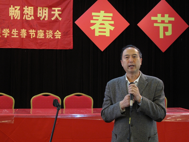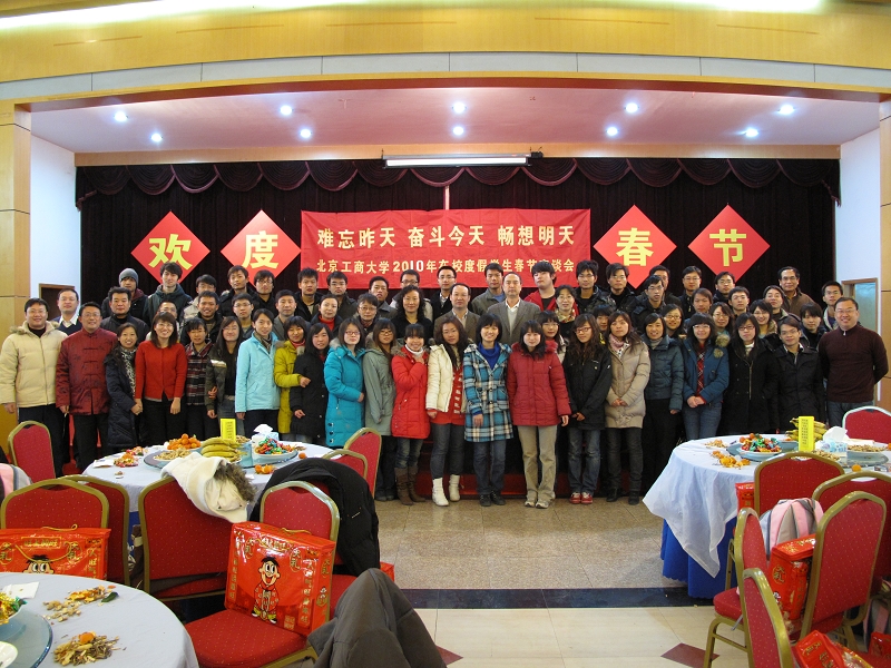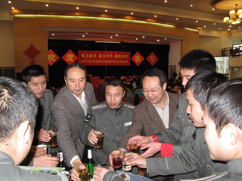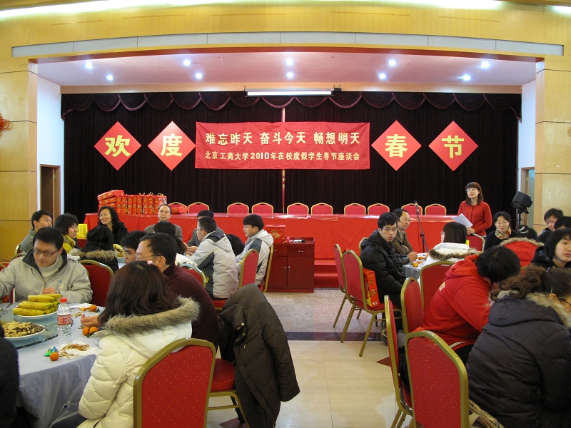 2月13日,農(nóng)歷“除夕”。10時,阜成路東校區(qū)學生餐廳張燈結(jié)彩、喜氣洋洋,由學生處主辦的“難忘昨天、奮斗今天、暢想明天”2010年寒假留校學生春節(jié)座談會及節(jié)日午宴在一派節(jié)日氣氛中隆重舉行。學校黨委副書記盧思鋒、副校長呼文亮及有關院系、職能部門負責同志與寒假留校的學生歡聚一堂,共賀新春。
