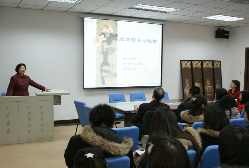 汪蘋教授不僅以一名教授,一名政協(xié)委員,而更是以一名普通群眾代表的身份,近距離、深切的向同學(xué)們介紹了一下自己作為兩屆政協(xié)委員所走過的心路歷程,介紹了作為一名代表如何代表群眾向國家表達意見和建議,汪蘋教授還風(fēng)趣的向參會的師生代表“曬”了自己幾年來的代表提案。現(xiàn)場同學(xué)紛紛就自己感興趣的話題向汪蘋教授請教。