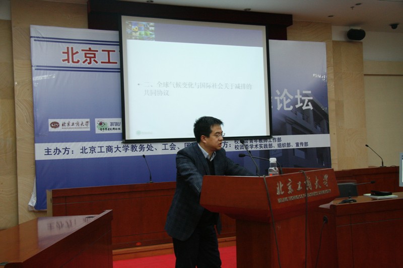 3月24日晚,青年學(xué)者先鋒論壇第三講在我校良鄉(xiāng)校區(qū)模擬法庭開講。我校經(jīng)濟(jì)學(xué)院副教授、經(jīng)濟(jì)系副主任郭毅老師為大家?guī)砹艘粓鲱}為《低碳時(shí)代的大國博弈與我國產(chǎn)業(yè)戰(zhàn)略選擇》的專題講座。參加此次論壇的有校團(tuán)委書記呂良、經(jīng)濟(jì)學(xué)院團(tuán)總支書記王海偉、化學(xué)與環(huán)境工程學(xué)院團(tuán)總支書記郭清堯以及近200名同學(xué)。