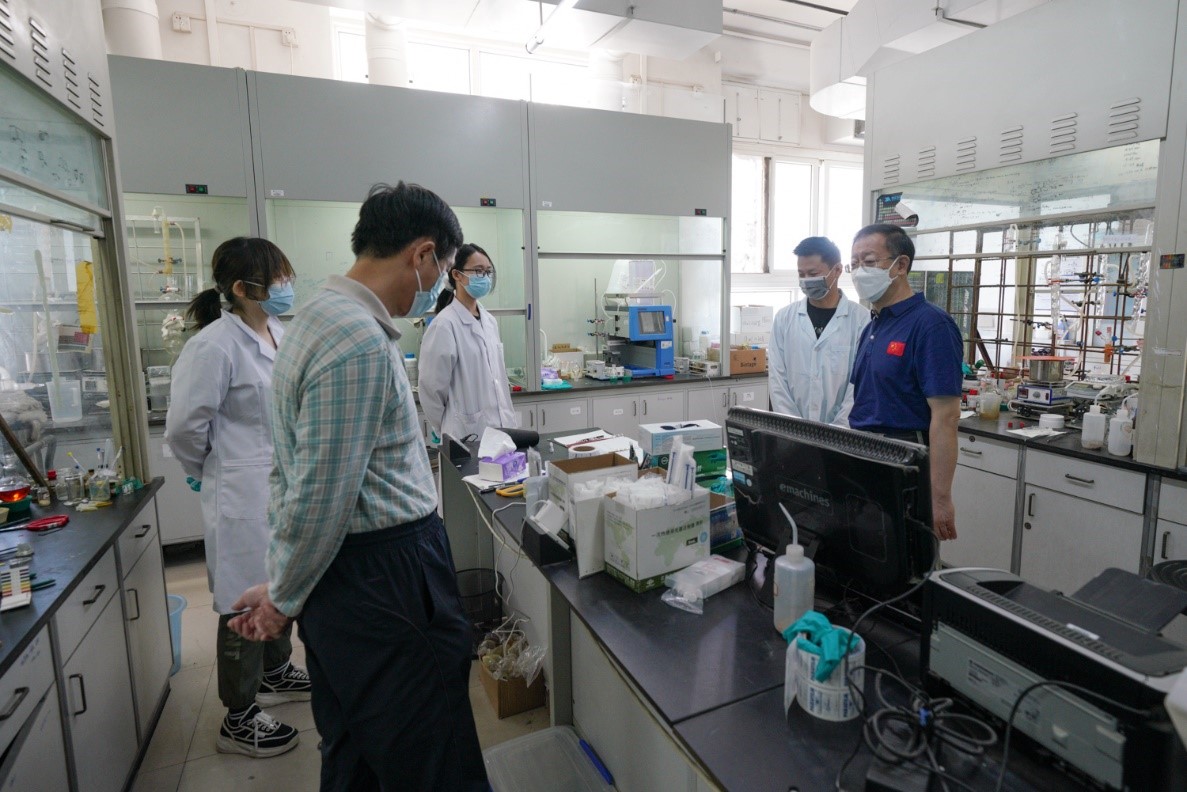 5月30日上午,黨委副書記、校長孫寶國,黨委副書記王偉及派駐我校聯(lián)絡(luò)員陳鼎琪一行,實(shí)地檢查指導(dǎo)阜成路校區(qū)疫情防控和實(shí)驗(yàn)室安全工作。學(xué)校疫情防控相關(guān)專班負(fù)責(zé)人參加檢查。