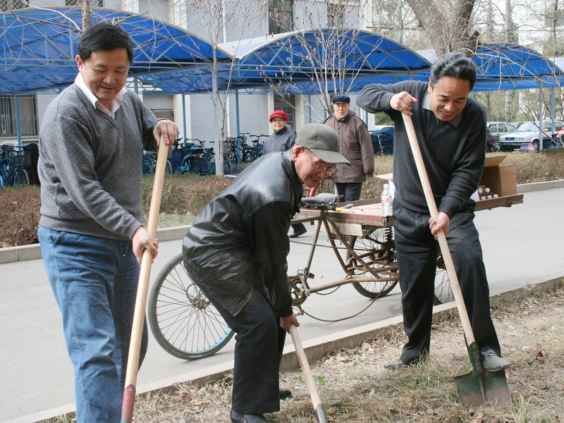 這次義務(wù)勞動的主要內(nèi)容是平整、深翻教三樓南側(cè)、校醫(yī)院南側(cè)綠地。領(lǐng)導(dǎo)帶頭,大家分片承包,分工合作,氣氛熱烈,干勁十足,不到兩個小時就完成了全部任務(wù)。