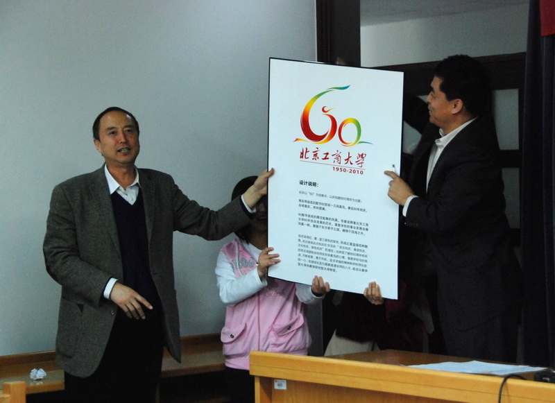 每個人都屏息凝視著緩緩拉開的灰色幕布,等待期待已久的新校徽最終揭開神秘面紗,當以“工商”二字的拼音首字母“GS”為主體的新校徽映入人們眼簾時,現場立刻響起了熱烈的掌聲。