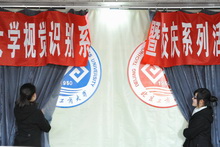 校慶辦公室主任張曉磊詳細介紹了校慶六十周年系列活動。他向大家展示了由我校藝術與傳媒學院教師范川設計的校慶60年“鳳凰鳥”標志并邀請盧思鋒副書記啟動了校慶網。