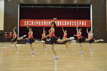 15:30分,動感十足的音樂引爆會場,健美操隊隊員活力四射的表演拉開了開幕式序幕。