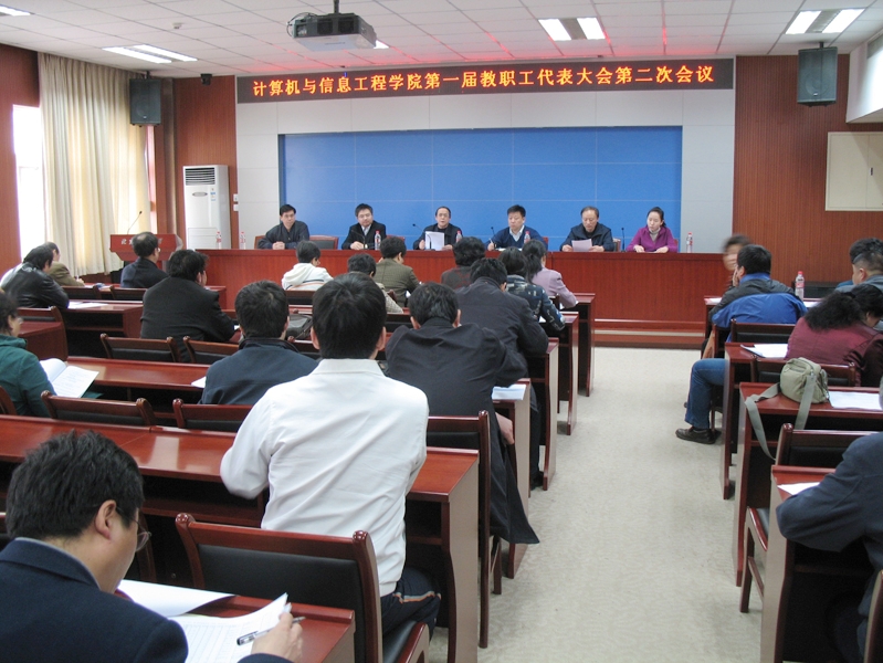 4月21日下午計算機與信息工程學院舉行一屆教代會二次會議。學院教代會代表,院領(lǐng)導,教授,各系及實驗中心主任共40人出席了會議。會議主題為:“深化管理體制改革,促進教學科研全面發(fā)展”。會議由學院分工會主席蘇維均主持。