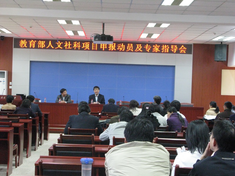 王國順在會上首先作項目申報動員報告,回顧了我校近幾年教育部項目申報與研究工作的基本情況,鼓勵廣大教師潛心基礎研究,找準定位,突出優(yōu)勢,形成特色,積極申報,強調特別要做好申報書的撰寫工作,仔細研讀申報指南,精細安排時間,解放思想、合理組織隊伍,教師、學院、學校共同努力,爭取在2010年的項目申報工作中取得突破。