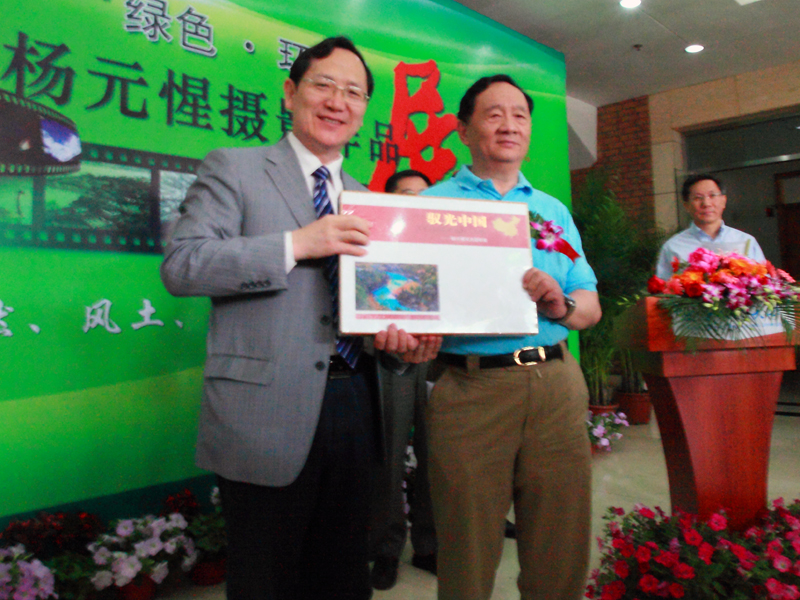 開幕式上,楊元惺先生還向譚向勇校長和學校贈送了本人攝影作品畫冊。