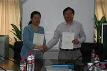 秦艷梅主任做總結發言,認為文科實踐中心與山東工商學院商學實驗中心建立共建模式,是文科實踐中心發揮國家級實驗教學示范中心輻射作用的重要探索。兩中心對口共建,優勢互補,并且對推動文科實踐中心建設起到促進作用。陳冰教授、盧奇教授以及文科實踐中心其他教師代表也做了發言并熱烈討論。最后,秦艷梅主任與劉傳庚處長在共建協議上簽字,會議在一片友好和熱烈的氣氛中結束。